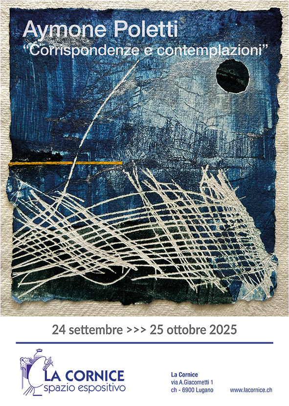 Questa mostra è l’occasione per celebrare i 25 anni del percorso creativo dell’artista, tramite alcune opere rappresentative di ogni periodo. La formazione di Poletti si è svolta tra l’Accademia di Architettura di Mendrisio, l’USI e la ZHAW di Winterthur. Nel 2015 Aymone è stata selezionata come “artista in residenza” presso la Cité des Arts di Parigi, nel 2016 ha partecipato alla mostra collettiva “Donazioni” allo spazioOfficina di Chiasso. Numerose le sue mostre successive, tra le quali collettive a Parigi, Ginevra, Trento, e personali a Intragna (Museo regionale delle Centovalli e del Pedemonte), Riva San Vitale (Palazzo Comunale), Muzzano (Galleria La Cantina) e Venezia. Al mondo pittorico di Aymone Poletti – fondato sulla centralità della natura, resa attraverso le sue fantasiose rielaborazioni nella memoria e nel sogno – potremmo adattare una frase del fisico Heisenberg: “Ciò che osserviamo non è la natura in sé stessa ma la natura esposta ai nostri metodi d’indagine”. Metodi che corrispondono alle sollecitazioni profonde dell’immaginario. È Aymone stessa a spiegarcelo: “Si tratta di paesaggi ricordati, di paesaggi sognati, di un mondo che vuole fungere da conforto e da supporto”. Una totalità cosmica da riferirsi, in sostanza, ai concetti fondamentali dell’ecologia, dal momento che il mondo è il nostro oikos, la nostra casa primordiale. Senonché l’età moderna impone che lo sguardo sulla natura vada profondamente rinnovato, sottoposto al dubbio e alle più variegate ipotesi, che il paesaggio ponga in luce anche la sua fragilità epocale, le sue crepe, la sua ‘carsica’ non-presenza. L’artista ne tiene conto. Mettendo in scena un paesaggio del tutto interiorizzato, Aymone si lascia alle spalle i condizionamenti del naturalismo. Vediamo sorgere davanti a noi ambienti boschivi per così dire vetrificati, soli e lune alla mercé di orografie spaesanti dove, in molti casi, i corpi astrali o naturali vengono posti a distanza da operatori simbolici come la rete o lo steccato. Cieli e terre che s’implicano a vicenda entro uno spazio ‘altro’, che sembra accennare all’anima mundi. Tutto questo è ottenuto - sul piano della rappresentazione e mediante l’uso di tecniche differenziate, dall’acrilico al monotipo all’acquarello – privilegiando incastri e rimandi figurali, variazioni cromatiche e tonali (dall’intenso allo sfumato) contigue o sovrapposte. Ciò che si frammenta, potremmo dire a questo punto, cova in sé i germi di una futura, utopica ri-conciliazione. È la vita, in fondo, a imporsi nell’opera di Aymone Poletti.